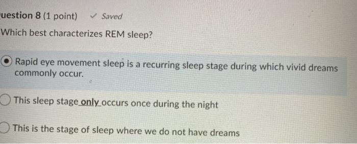 But I prattle Something too wildly and my fathers precepts I therein do forget. A persons depth of sleep alternates up and down several times. Which of the following best characterizes a nights sleep. It occurs primarily later in the night and accounts for about 1015 of our total sleep time. People generally have multiple periods of REM sleep each night and it primarily occurs later during sleep time. 2 Which of the following best characterizes a nights sleep. According to Freud _____ mental processes occur without a person being aware of them. Our depth of sleep alternates up and down many times. 8 to 10 hours a night c.