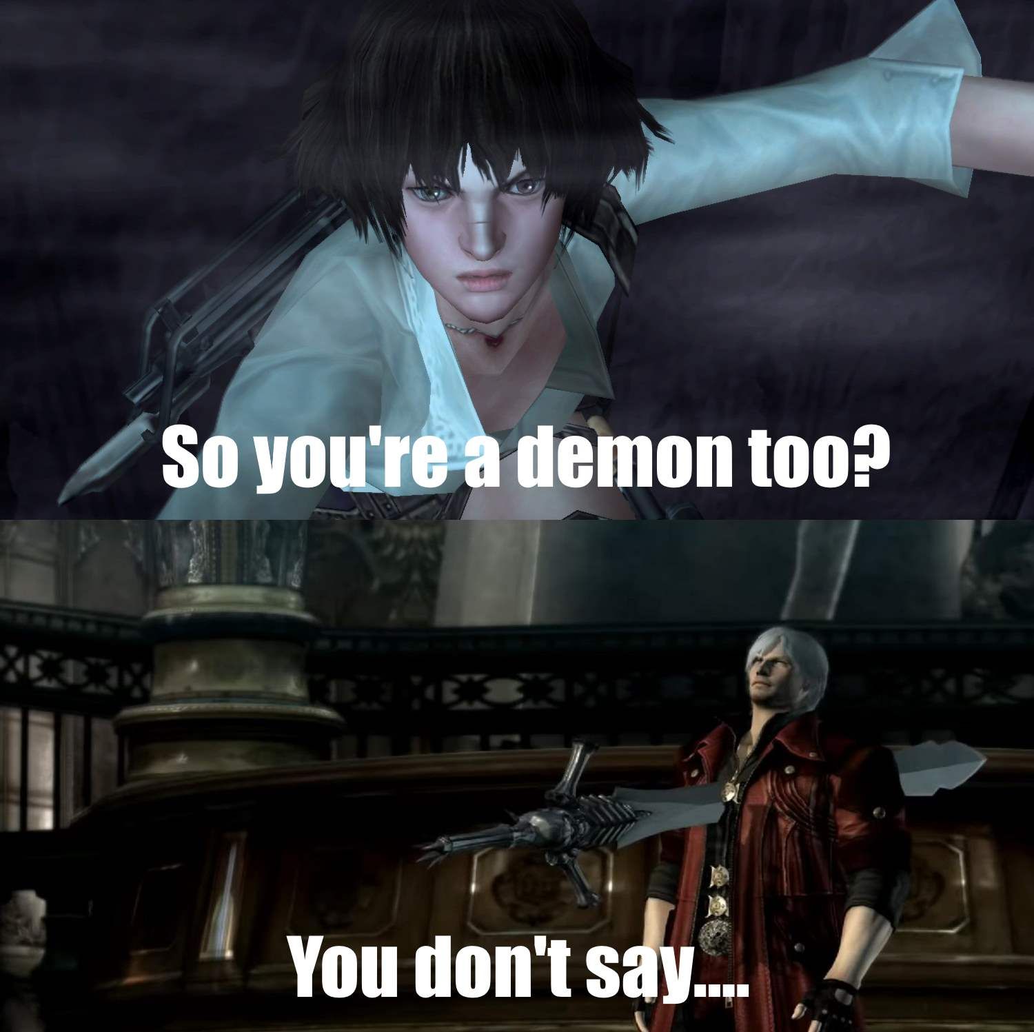 Bald vergil pls dmc v mod devil may cry 5 i feel as tho they used an easy to edit engine as fanservice lmfao. Hes even seen the 30 year old Boomer Dante stuff. I know a lot of you really like the memes Ive made and reblogged so Im going to keep the blog active so you can still share and laugh at them but I. Pretty sure this is how everyone felt yesterday. See more ideas about devil may cry memes devil. Log In Sign Up. Vidéo finale de devil may cry 5 qui extrait quelques combats darènes qui mont permis de décrocher le trophée tout en S qui ma lui-même permis décrocher. Vergil is now playable in COOP with V Nero or Dante. Im not taking asks and Im not taking requests because Im not enjoying Tumblr anymore.