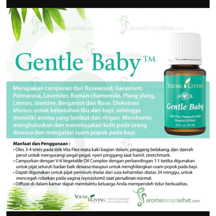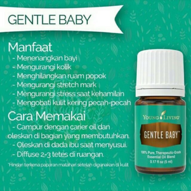 Gentle baby young living. Young Living Gentle Baby Essential Oil memiliki manfaat yang dirancang mulai dari Ibu hamil setelah melahirkan dan untuk bayi itu sendiri. Bagi ibu hamil minyak esensial ini berfungsi untuk menjaga mood dan meningkatkan energi positive agar proses melahirkan menjadi lancar. The scent of Gentle Baby evokes tranquil nurtured feelings that can be a wonderful companion for times of inner reflection.
